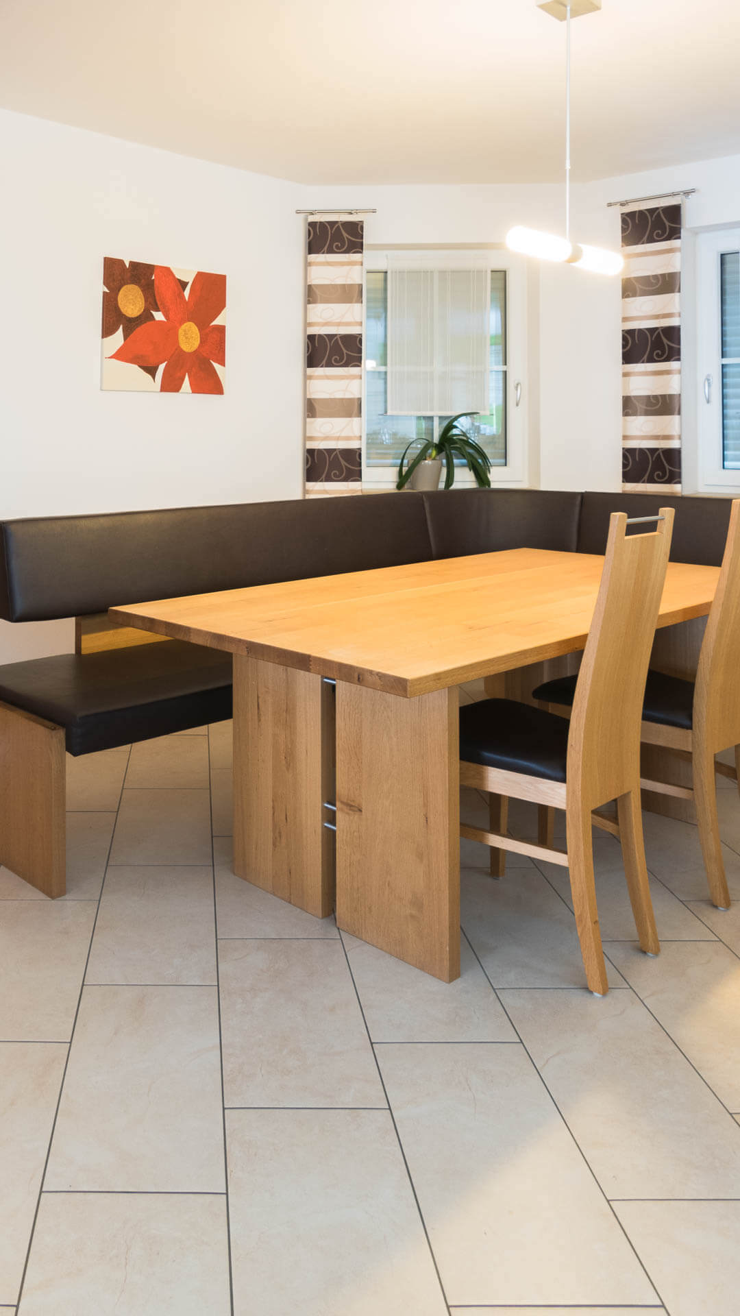 Natürlich fertigen wir auch die passenden Sitzgelegenheiten dazu, sei es die klassische Eckbank mit integriertem Stauraum (Truhenfunktion) oder eine Sitzbank in modernem Design und natürlich eine große Auswahl an verschiedenen Stühlen.