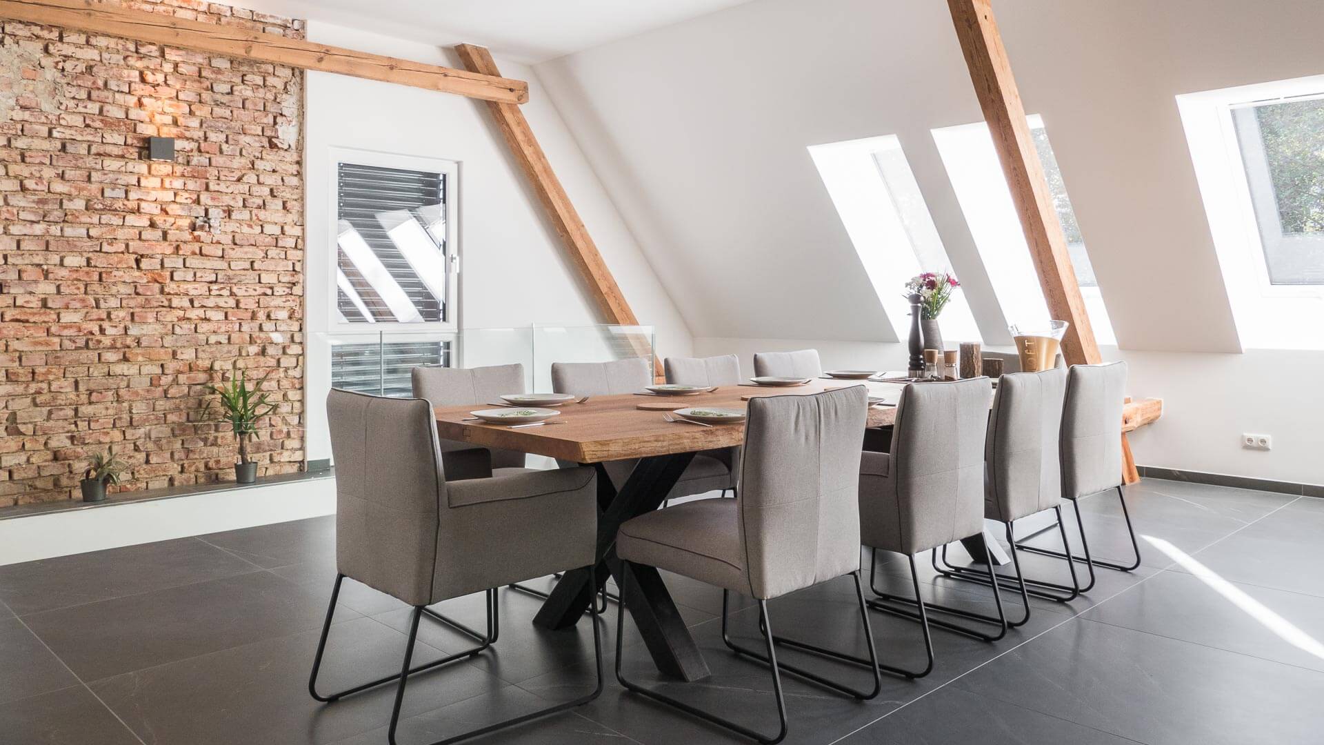 Neben der Küche gehört das Esszimmer zu den zentralen Elementen im Wohnbereich. Es ist und bleibt der Mittelpunkt des Familienlebens und ist durch nichts zu ersetzen. Hier trifft man sich mit der Familie und Freunden.